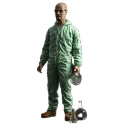 This Breaking Bad Walter White Previews Exclusive Hazmat Suit Action Figure stands 6-inches tall and features the chemistry genius science teacher turned kingpin in a hazmat suit, recreating the look he sports as he's working in the lab. Accessories also included is a small liquid container, a small flask, and a large flask. Relive the tense, edge-of-your-seat excitement with the Breaking Bad Walter White Previews Exclusive Hazmat Suit Action Figure! Ages 15 and up. Normal Price: TT$274.99