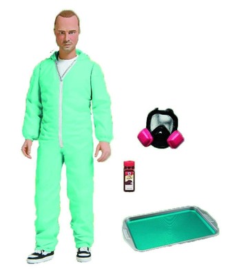 What's cookin', Cap'n? This Previews Exclusive Breaking Bad Jesse Pinkman in Blue Hazmat Suit action figure features Jesse Pinkman as seen in numerous episodes from the award-winning series Breaking Bad. Jesse stands 6-inches tall and he comes complete with a gas mask, chili powder, and a tray of blue crystal. The whole set is packaged on a collector-friendly blister card. Ages 15 and up. Normal Price: TT$274.99