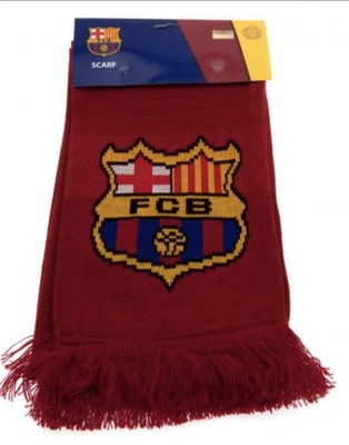 Claret and navy high definition jacquard knit scarf One side features FCBarcelona text in black and the other side 10 Messi. Both sides feature large Barca club crest at each end Official licensed product Approx 132cm x 19cm Product weight 190g On a header card Normal Price: TT$119.99